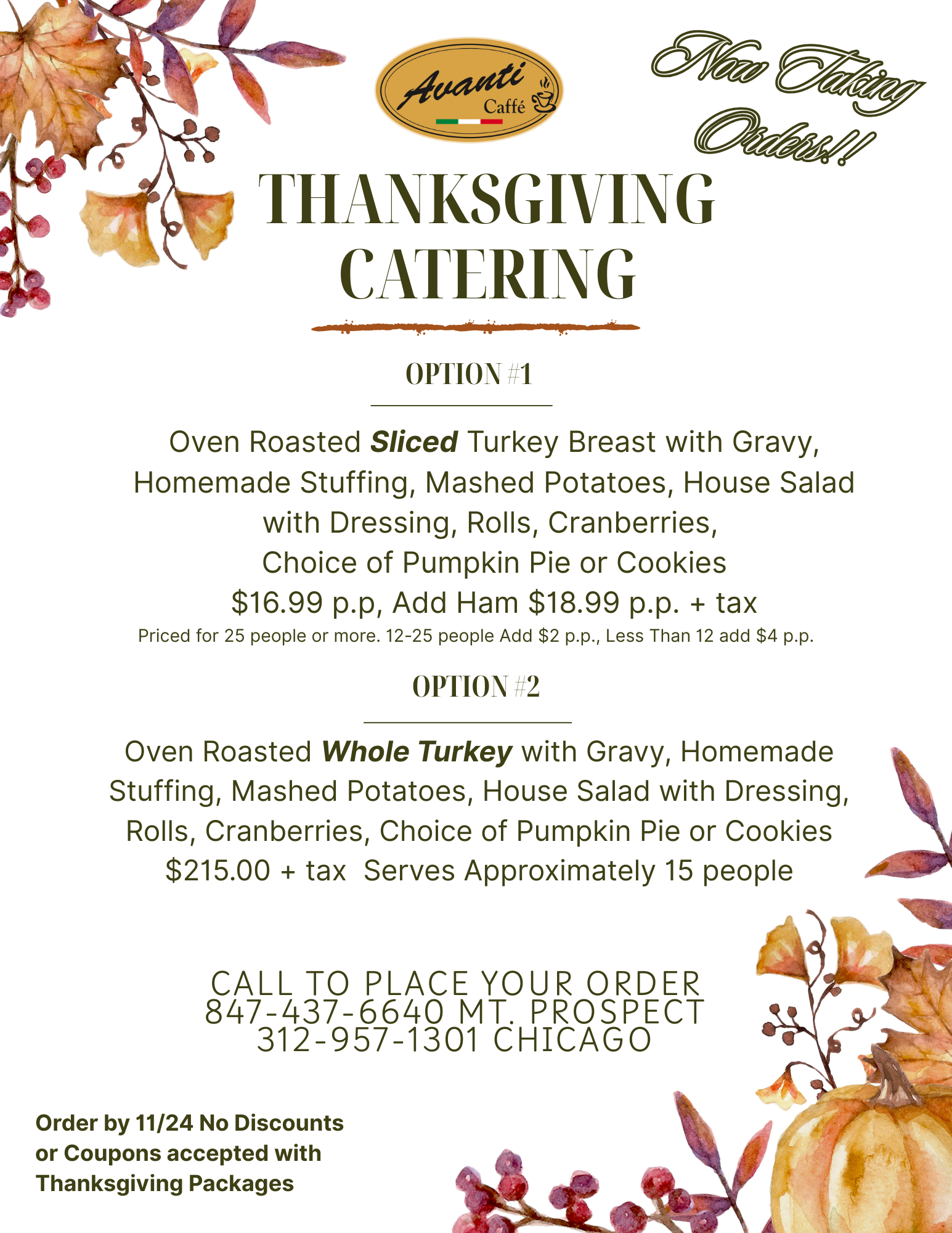 Let Avanti Caffe do the work for you. Our large variety of party sized meals are always freshly prepared, great tasting and perfect for any occasion. We offer catering to accommodate 10 to 1,000 people.